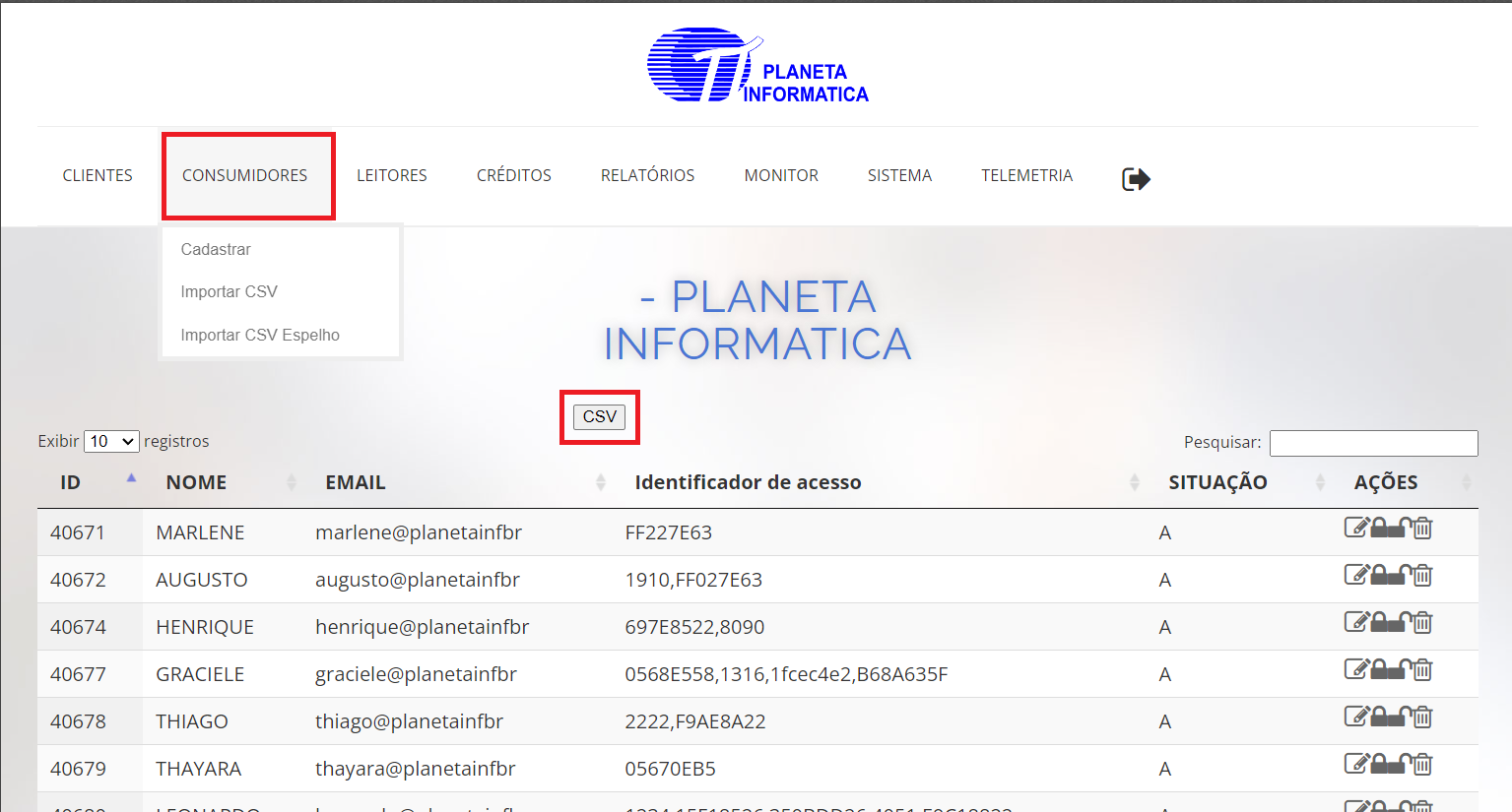2 – Na tela abaixo clique no botão CSV conforme destacado: