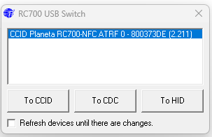 2 – In the screen below, select the RC700 reader and click on desired mode to switch